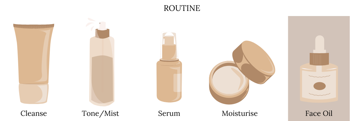 As the final step in your evening skincare routine, gently press 1-2 pumps of oil onto your face, neck & decollatage.